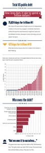 Think you're debt free? You're wrong. One way or the other, you're on the hook for your country's national debt. In the US this just passed a staggering 19 Trillion, and growing fast! A great info graphic from Sovereign Man on trying to make sense of this figure.