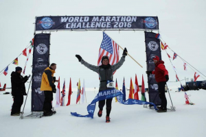 At first glance Becca Pizzie does not seem like an extraordinary woman. She's a single mother who operates a day care and manages an ice cream shop. And, oh yeah, she just set a world record by running 7 marathons on 7 continents in 7 days. with a record setting run time averaging under 4 hours per marathon. In the mens' race, US Marines finished first and second.