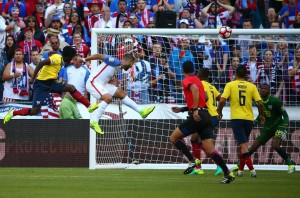 USA’s Clint Dempsey (8) heads the ball into the goal, putting USA in the lead, during the first half of the Copa America match 25 quarterfinal between USA and Ecuador at CenturyLink Field on Thursday.