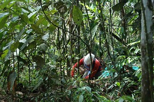 Kneeling down in the middle of a minefield, Noralba Guarin uses a spade to scrape away the hard red earth on a remote wooded hillside in southwestern Colombia. Sweating under her protective anti-explosive vest and shatterproof mask, she searches for landmines, a deadly legacy of 52 years of civil war in Colombia, one of the most mine-scarred countries in the world.