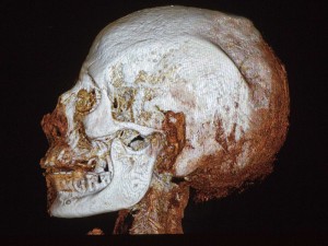 A CT scan of the skull of a 2,200-year-old Egyptian mummy on display in the Israel Museum in Jerusalem shows osteoporosis and tooth decay, the museum said Tuesday.