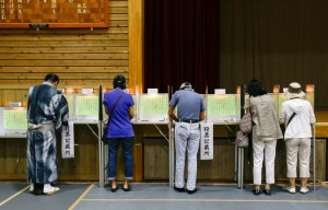 Voters in Tokyo filling in their ballots on Sunday for the governor’s race.