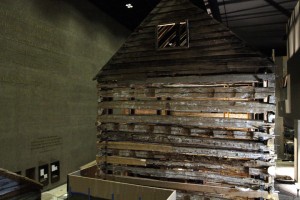 In this photo taken July 18, 2016, a slave cabin from Poolesville, Md., is on display in the Smithsonian National Museum of African American History and Culture in Washington, as seen during a media preview tour. The...
