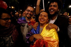 People in Bogata celebrate after Colombia's government and Revolutionary Armed Forces of Colombia (FARC) rebels reached a final peace deal on Wednesday to end a five-decade war.