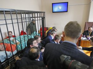 Kiev's Solomyansky District Court is a four-story pink building squeezed between an Orthodox church with golden domes and the soaring office tower of Ukraine's tax service.